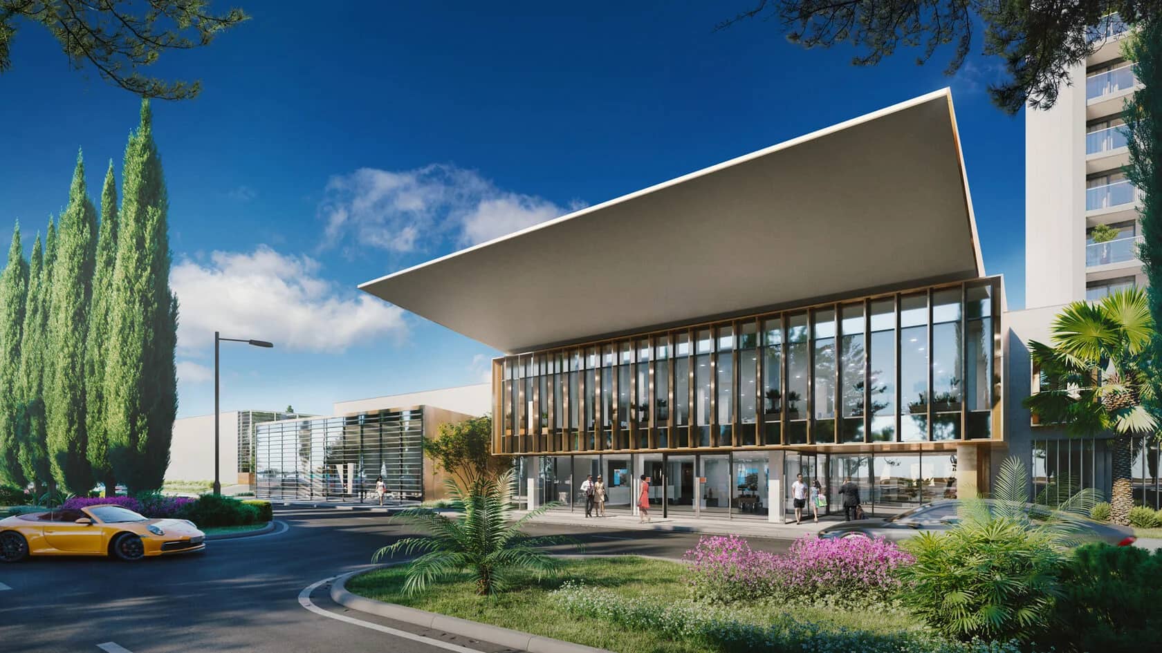 Амфитеатр, лаунжи, теннисная школа, симулятор гольфа, японские онсэны, детский центр, кинотеатр